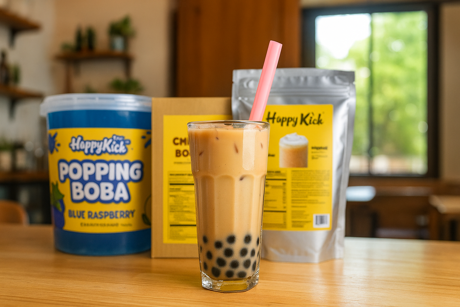 Happy Kick is a U.S. importer dedicated to making boba accessible for independent cafés, restaurants, frozen yogurt shops, and dessert concepts.